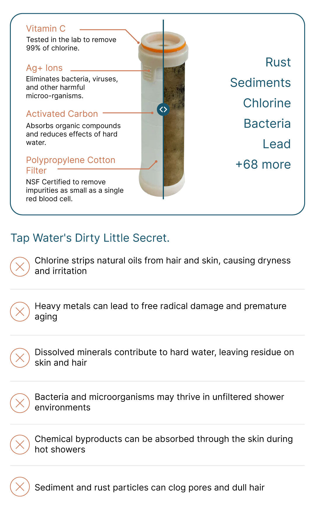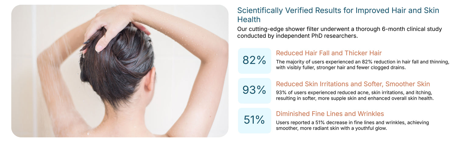 Our state-of-the-art shower filter was rigorously tested in a 6-month clinical study led by independent PhD researchers.